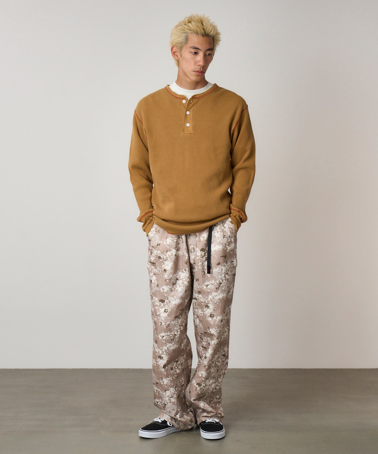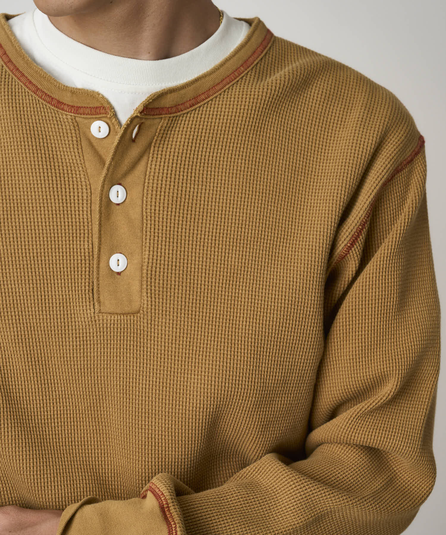 Gramicci Healthknit Waffle Long Sleeve Henley Tee (Cinnamon Pigment)