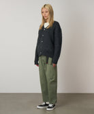 These are the Women’s Voyager Pants. As their name suggests, they’re made for going places—constructed from hardy cotton twill fabric with plenty of pocket space—they’re functional outdoor pants more than ready for adventure. A bit more shapely than most pants on the baggier side of things, they’ve got what would probably be called a ‘balloon silhouette’—with a high waist, plenty of room in the thigh and a gentle taper. They’ve got slightly cropped hems too, so whilst they’re roomy, they don’t engulf your footwear.