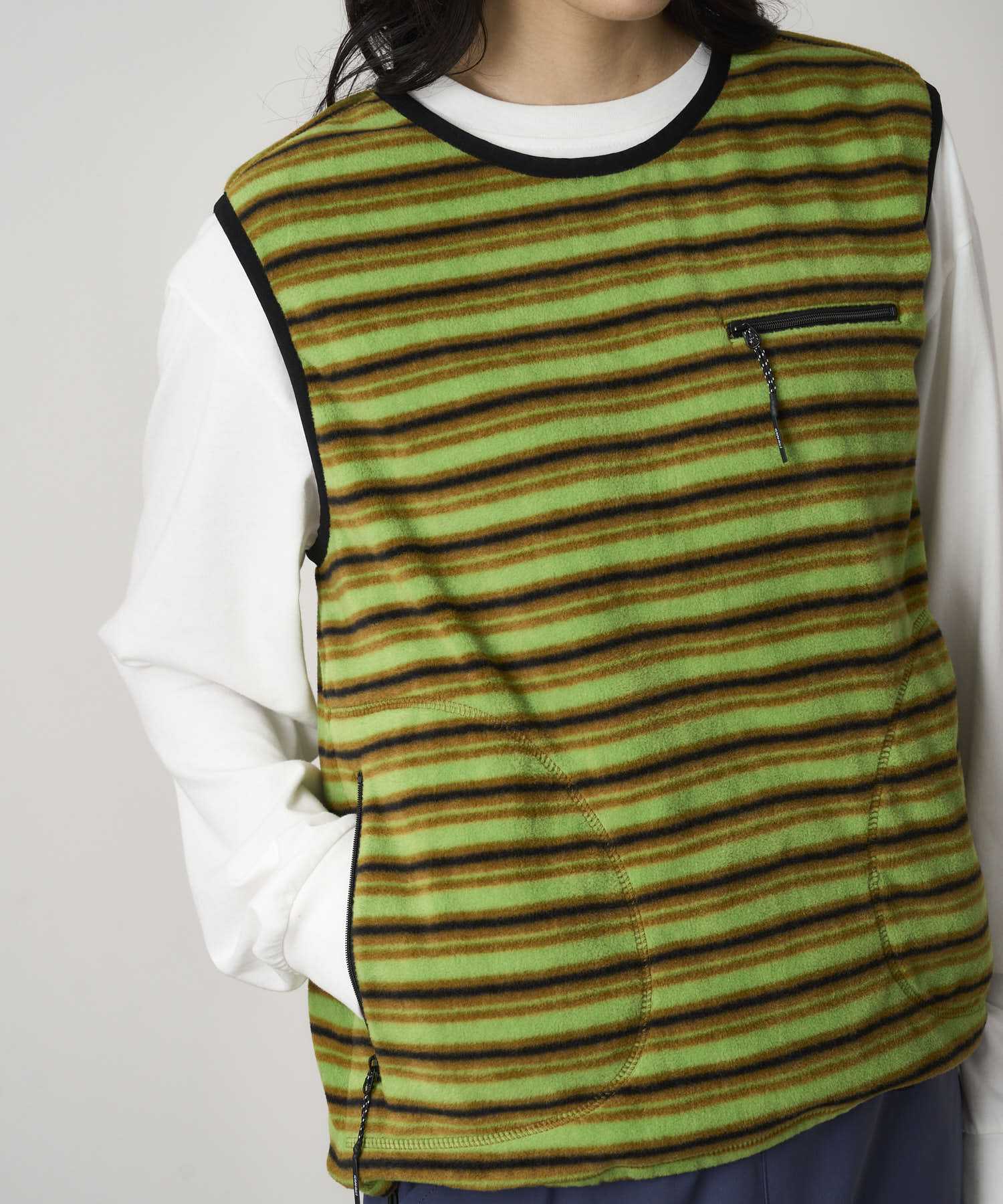 Gramicci Women's Thermal Fleece Pullover (Chartreuse Stripe)